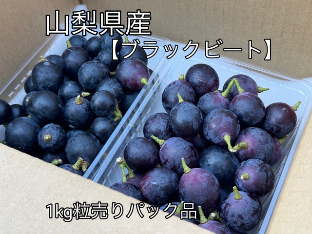 山梨県産【ブラックビート】 朝採れ新鮮!農家直送 山梨県産のぶどう【ブラックビート】親は藤稔&ピオーネ‼️酸味と甘みがまた一粒また一粒と手がでる美味しさ! 山梨県産【ブラックビート】 [商品内容] 1kg箱の商品の場合、(500g×2パック) 房型があまり良くないブドウを粒や支更で切り分けてパック詰めにした商品です。品種の特性上、房に隙間があると脱粒しやすいため切り分けて販売致します。 正規品と味も変わらない為ご家庭で食べる分には丁度いい人気な粒パック売り!! ※ブラックビートは酸味があるぶどうですので、苦手な方は購入をお控え下さい。 種なしぶどうになります。皮は厚くて渋みがあるので、出して食べる品種です。渋みはポリフェノールなので、気にならない方はそのまま食べることもできます。 [発送状態] 常温での発送となります。 [発送時期] 収穫時期にになりましたらご注文頂いた順番でお送り致します。天候や収穫状況によって多少前後する場合がございますのでご了承ください。 発送した当日にご連絡させて頂きます。 [日付指定] 収穫でき次第の発送になりますので、日付指定は出来かねますのでご了承ください。時間指定のみとさせて頂きます。 ※自動発行の伝票を使用している為、時間指定がある場合は必ず注文時に選択をお願い致します (ご注文確定された後は、時間の変更はできません。) [配送地域] 本州のみ発送しております! ※本州以外の方のご注文はキャンセルさせて頂きます。 ⚠️商品の特性上、当農園で急激な天候悪化・その他予期せぬ事情が発生した場合はキャンセルとさせていただきます(返金対応) ※梱包には細心の注意を払っていますが、傷みなどが発生する場合がございますのでご理解くださいますようお願い申し上げます。 ※到着時に何か不都合などあった場合にはご連絡ください (到着後に発生した傷みになど関しては対応できません) ※全て種無しとなっておりますが、天候等によって稀に種が入る場合がございます。 ※日付指定はお受けできませんが、長期不在等でお受け取りが難しい日がある場合は事前にご連絡ください。 賞味期限/保存方法 商品到着次第状態を確認しながらなるべくお早めにお召し上がりください。常温保存がオススメです。風通しの良い日陰や冷暗所にて保存するようにお願いします。 おすすめの召し上がり方 到着後すぐにお召し上がり頂けますが、食べる1時間前に冷蔵庫に入れてから食べると美味しくお召し上がり頂けます。数日では食べ切れない場合は、冷凍保存するとよいでしょう。粒をばらして冷凍し、半解凍で食べるとシャーベット感覚で味わえます。